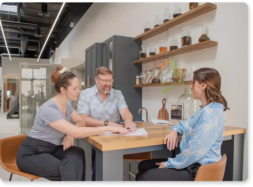 Next, we start by bringing the conversation to your home. This phase is about gathering the details we need to start shaping your project. We’ll take photos, measurements, discuss layout possibilities, and present simple floor plan options to refine the direction back in the showroom. At the showroom, we’ll discuss: